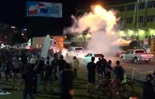 SANTO DOMINGO.- “Segunda bomba lacrimógena que tiran hoy”, decía uno de los manifestantes que se encontraba esta noche en las afueras de la Junta Central Electoral (JCE) al momento que les lanzaban estos compuestos químicos.